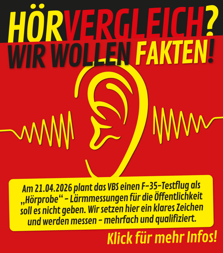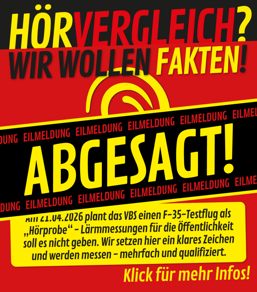 Der Verein Interessengemeinschaft für weniger Fluglärm in der Alpenregion (IGF ALPENREGION) setzt sich in der Alpenregion Brienz / Brienzer See / Ballenberg / Meiringen-Haslital für eine Eindämmung des militärischen Fluglärms (Flugplatz Meiringen Unterbach) ein. Die IGF fordert zum Schutz der Bevölkerung und der Natur und mit Rücksicht auf unzählige Feriengäste in der Region u.a. eine Reduktion der Flugbewegungen und eine Abschaffung des Fliegerschiessens auf der Axalp. Auch die Verhinderung der Stationierung des neuen F-35 ist ein erklärtes Ziel. Mehr über die IGF, unsere Aktionen und Hintergründe zu Fluglärm und dessen Auswirkungen findest du auf unseren Seiten – herzlich willkommen!
